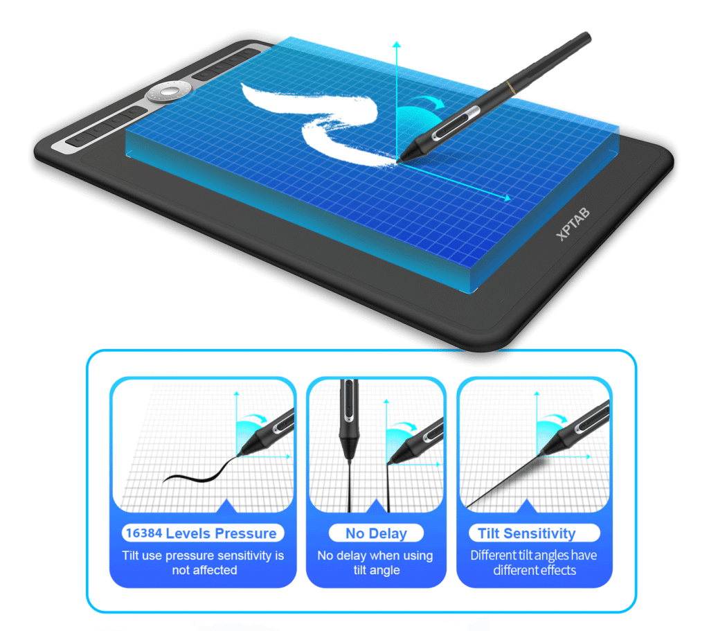 The speed at which your tablet communicates with your computer is crucial to a natural drawing experience. A low pen rate can lead to frustrating lag, broken lines, and a disconnect between your hand and the screen. The XPTAB Model Pro10 eliminates this frustration with an ultra-fast pen rate of over 300 points per second.